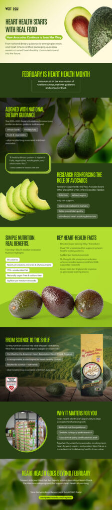 West Pak offers Heart-Check certified avocado programs, merchandising support, and category expertise to help retailers connect shoppers with heart-healthy choices.